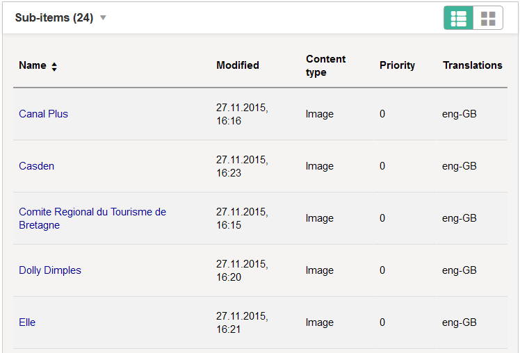 • Improvements to the Sub-Items view of a content item: You can now sort content items by clicking column headings